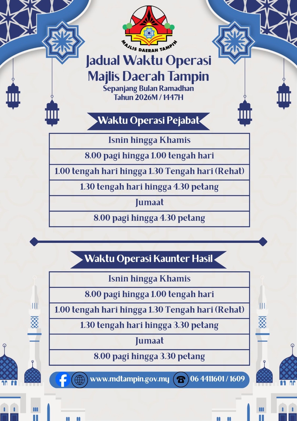 Segala urusan boleh dilakukan dalam tempoh masa yang ditetapkan. Kerjasama semua pihak amat dihargai.