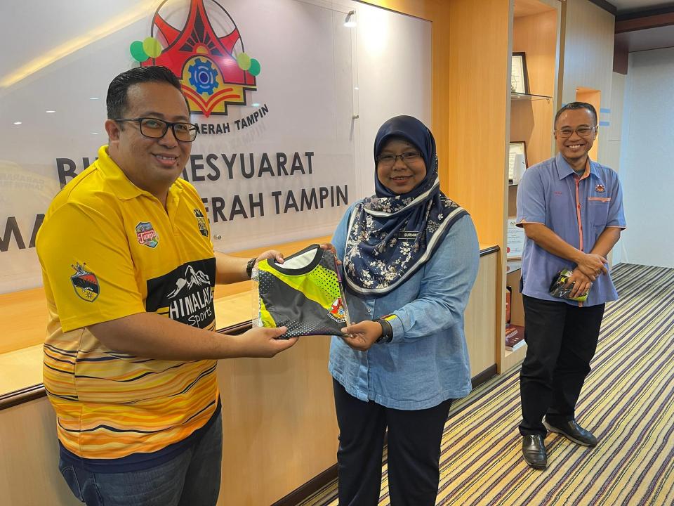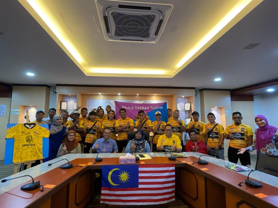 Majlis Penyerahan Jersi & Perlepasan Pasukan Majlis Daerah Tampin ke Kejohanan Bola Sepak Persatuan Pihak Berkuasa Tempatan (MALA) telah di sempurnakan oleh Yang Dipertua MDTampin Pn Suriani Bt Salihan kepada Pengurus Pasukan iaitu En. Mohd Faizal Mohd Yasin sebentar tadi sambil diperhatikan Setiausaha MDTampin En Zulhilmi B Marzuki.